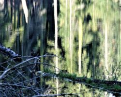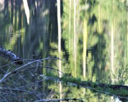 Across the rest of the cement dam, over the metal bridge to terra firma, I began to get a funny feeling; something was happening.  Were some of my other lives seeping into my present?  Had I been here before?  Was this my house; was this my wife; how did I get here?  I started to think we were back at Lindsey Lake – but how could that be?  As we got to the road and walked up to the campground sign, sure enough, we were back to the first place we had driven.  We had just come in a big loop and ended up camped on the other side of Lindsey Lake.  Oh well, that is what exploring is all about.  After a good laugh, and now having some bearings on where we were and how we got here, we headed back to our spot.  After crossing the dam, we followed a little path along the water’s edge through the trees and riparian vegetation; enjoying the sparkle of the water from the sun’s rays.