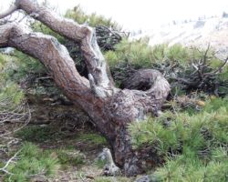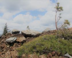 We turned around and drove back to the only side road that seemed like it could have been a turn to the lakes we missed, maybe a quarter of a mile back from the end of the road/trailhead.  We took this fork off to the right and headed up a pretty good dirt road – at least as good as the road we had just gone up to the trailhead parking lot.  Thinking positively, we continued on a few minutes passing smaller, less traveled/maintained roads left and right.  There were many trees “marked” with blue paint marking timber sale unit boundaries or “take” trees – trees that were to be cut down in the timber harvest plan.  At the top of the hill, the road split yet again, left, right, middle.  The middle track seemed most prominent, so straight ahead we went; and then down, down, down, down, down…get the picture?  The only things that interrupted our 40 degree descent were the massive berms that help slow/prevent erosion from water streaming along the roadside.  These may be a foot or so deep forming a trench and then the material excavated to make the trench is piled up on the downhill side to make a lip which is also about a foot high, so as you drive over these dips and lips, it can be rough going.