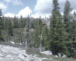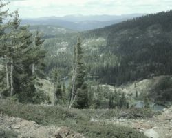 I had sort of thought of not getting back in the car on this middle day and instead spend it hiking some of the trails to some of the lakes in the Grouse Ridge Basin.  But, I was antsy to find the stupid Carr/Feeley Lakes that we somehow couldn’t find the day before. I couldn’t wait until the following day on our way out to find them, as I knew by then, we would be thinking of being home and if we had trouble finding the lakes, it would not be fun.  We would be torn between continuing the search until successful, and getting home at a reasonable hour.  So off we drove, up, up, up, up, and over all of the dips and bumps to the top of the Red Fir mountaintop.  We retraced our path from the day before; back to Forest Road 17, turn left, then back up the hill to the trailhead parking lot.