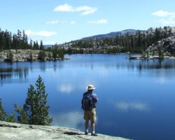 My wife Kristen and I headed out of town last weekend to try to get to a lakeside spot in the Grouse Lakes Basin area of the Tahoe National Forest.  This area is North of Interstate 80 above Emigrant Gap where Highway 20 comes in and then North on Bowman Lakes Road.  Door to door, it was less than three hours from Carmichael and there are dozens of lakes in the “basin”, some of which you can drive to.  The rest require a hike, although the section of trail we were on was very easy walking and we passed at least 7 different lakes in about a two mile stretch.  It is a fantastic area to hike and backpack for spectacular scenery within short distances of easy hiking from the trailheads.