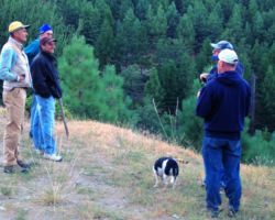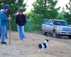 The next thing I knew, I had a mound of pasta on my plate and was mowing through it with great vigor. By some miracle, I had a fresh bourbon and coke with a fresh lime wedge and a huge chunk of hot French bread. The pasta was outstanding – the boys were nourished – and rejuvenated, and the thirst raged. Dusk was upon us and there was talk of taking a hike back up the hill to Big Hill road. Somehow, from out of nowhere, motivation ensued. We packed up beverages and the gang started out of camp. Unfortunately, Franklin was having none of this and exhibiting more sense than the rest, held his ground about fifty yards up the road. Keir, being the good dad that he is, relented, and returned to camp with his companion. Later that evening, on the ridge far above, we thought we heard a faint howl of forlorn hound love, but upon our return to camp, all was quiet and all were left to their own opinions.