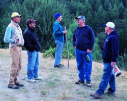 On this trip, I led the three vehicles up Big Hill Road since I had some idea of where I wanted to go. I quickly noticed how different the forest was since the last time I had been here. Massive thinning/harvesting projects had been done on either side of the road on the flat part near Ice House Road. Once we began to climb up on top of the hill, the trees were much larger, maybe 30 feet tall, completely blocking the view I remembered – a good thing for the forest, but not good for this trip. These differences were all good reminders that things do change; fires, floods, landslides, insect and disease damages – these events alter the landscapes in significant ways and it is good to remember and pay attention. Finally, up on top of the ridge, we took the first road to the East we found. I had several other spots in mind, but since the trees had grown so much, I figured none of them would offer the view of the Sierras we were after. The road was dropping more than I had hoped, but on we went, winding in and out of the drainages and ridges. We passed a few wide spots in the road, a couple side roads that could have led to a spot, but we kept looking for a spot at least a little off the road, offering a better view, and requiring less work to investigate and explore.