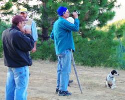 Soon Ken joined me, and every few moments another of the fools joined us on the hill. Keir, Tom, Steve, and then Bob. All the fools were now gathered on in the cool stillness. The mornings are often a little goofy temperature wise. Sometimes I think it is fairly warm first thing upon leaving the tent, but then it may be that I am still toasty from my sleep. Then sometimes, it seems to get cooler just before sunrise, significantly cooler, but that doesn’t seem right. It is coolest before dawn yes, but it isn’t warmer an hour before dawn, and then get real cold, and then warm right back up again? In any event, I was glad to have my sweatshirt. Keir slid down the embankment to get a little doggy sweater for Franklin and he definitely appreciated it.