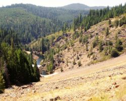 Arriving back at the wide spot in the road, with eyes only half open and properly diverted just in case, we found the boys having partially set up a kitchen and now lounging in the shade up the cut bank above the road. This spot, although requiring a little bit of effort to scramble up to, offered a very nice view of the Crystal Range and Desolation. It was time to call an end to our hunt and set up camp. This spot was good enough and putting more time and effort into the search didn’t seem prudent at the time. It was about 2:00 by then, so Home Sweet Home it was.