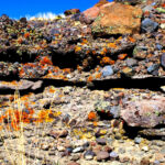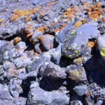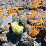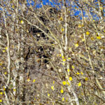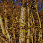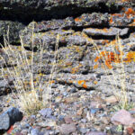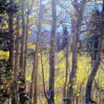 The face of the cliff was deeply cut and fissured – the more you looked the more erosion and sculpting you could see and I am sure this would happen if you sat and stared at this face for a lifetime. The primary color of the rock was a dark brown/gray, but the formation had huge areas covered in red and yellow/green lichen. With each look, and certainly the changing angle of the sun, it would appear remarkably different. I could hardly take my eyes of the cliff; had it not been for the Aspen and willow and grasses that were a thousand shades of Fall color, and twinkling sunlight on top of that; the lake views and the far distant mountain views, I may have made my life’s ambition to notice every inch of that cliff in every possible light. It would have been a noble cause.
