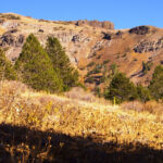The three of us had split up yet again. When we got to the corral, Bob and Ken ventured up the hill towards the cliff. I needed to stay on the road, so I watched the two of them go out of sight and then meandered back down the road towards camp. I took many photos, often of the same thing, but every step and every different perspective and the low angle of the Fall sun, made every sight a wonder. I sometimes felt like I was having a photo shoot with a beautiful model and an automatic camera with a speed rewind snapping photos as quickly as my finger could depress the button, from every angle, in constant motion, repeatedly telling her how beautiful she was and how great all her various poses were. Everywhere I looked was an inspiring photo opportunity.