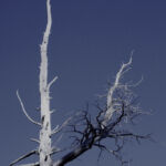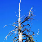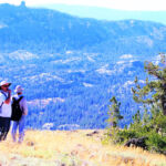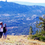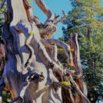 We hunkered down in the shade of a small patch of tiny, twisted, but possibly ancient Lodgepole. We absorbed all we could, including a beverage and some of our day snacks, and kicked back to enjoy our accomplishment, company, and surroundings. The map was oriented with compass, the binoculars were out, and Ken was surveying the horizon for images of past trips, prior experiences, and future memories to add to the quilt. There were peaks out there, further East and Southeast. Faint, distant, snowcapped profiles of past trips, earlier voyages, and silhouettes of prospects yet to be imprinted to fabric. It helps us connect past, present, and future – ours and theirs – those that come with us and those who do not – who cannot. It felt good.