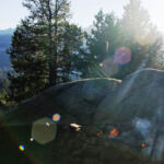What to do – what to do. Well, much was revealed. A road below us revealed a fairly large campfire ring. Since it was clearly visible from the road, this would not be a place we could probably camp, but it required additional reconnaissance. Putting my blinker on at least 500’ before the turn, we proceeded safely and cautiously to the right, below the main road at a slight angle veering away from it. Just before we got to the fire ring now off our right, between the vehicle and the road we had just been on, we crested an ever so slight rise, and low and behold, a gift from those that preceded us. The road dipped and continued on another hundred feet or so ending at a massive fire ring at the base of a massive granitic promontory. The views South to Caples were spectacular; Kirkwood’s ski runs and volcanic knobs and ridge top stacks couldn’t be clearer. Round Top and the Sister’s were visible to the far East from the rocky promontories – two granite ledges that could be ideal locations for a cocktail hour or three. This was the place – this had to be Johnnie’s spot. We were ecstatic.