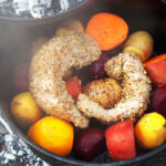 Ken appeared shortly and reunited, we shared our excitement and joy at having found this place. I needed a cocktail and Bob got the fire started and Ken, well Ken was busy. As usual, each of us had brought nearly enough food to feed all of us, but we still figured we would cook everything, eat as much as we wanted, have the rest for tomorrow and bring any leftovers home. I brought the massive Dutch oven Haley gave to me for Christmas and the “root dinner” Kristen and I had planned for our Central Coast trip but never made. I had a couple pork tenderloins to add to the roots, which were really potatoes, beets, yams, and Rutabagas, to make a full and complete meal in the Dutch oven. Bob added the briquettes, or really the Mesquite to the fire and we were on our way.