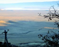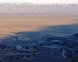 I was concerned about the status of the boys upon their awakening, but to my great surprise, nay astonishment, they both were quite spry and active. In fact they were both up before me again and thinking a sausage and egg breakfast was in order. I kept to my manly Neanderthal menu of yogurt, dry toast, banana, and hardboiled egg. Breakfast was consumed; coffee was re-engaging the mono nucleic acids and riboflavin’s and soon energy was being expended on packing up. Synapsis were again firing and cells recovered. The warm sun and fresh breeze were cleansing. We took in the vast vistas and many distant horizons, thousands of ridges, ravines, washes, and alluvial fans carrying their detritus onto the valley floor as we neared the moment of departure to begin our Northward journey home.