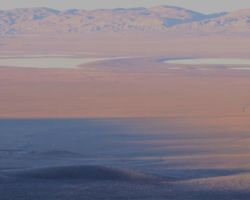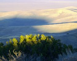 This really blew me away – I was pretty far away but it was so quiet, so peaceful, so still. An occasional breeze rustling the bushes, an occasional birdy whizzing by into some shrubbery; the call of a hawk, the call of a Raven; chirp of a little tweety bird. That was it. Silence. In gigantic open spaces like this, it is often so quiet. The few local sounds can be heard from great distances. Like the views and vistas and massive open landscapes that play tricks on your eyes and make judgment of distance so difficult, so too does the absolute stone cold peacefulness of the desert and open arid plains like this. I was really happy and hopefully captured some of the images of shadows, low light, and mirages that the setting sun was creating over the low lying topography below. I felt like Lawrence of Arabia – it wasn’t that desert-like; there were no sand dunes or camels, or Arabs for that matter but this place felt good and the images being created, and constantly slightly modifying into more perfectly beautiful and fluid scenes, had me. I could have sang; I could have flown with the Ravens; I could have been.