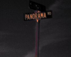So being out in the valley at night just seemed like we had the entire area to ourselves. We left the valley floor and started up and into some very slight humps of the Panorama Hills, smack dab in the middle of the Elkhorn scarp of the San Andreas Fault Zone and were soon a couple hundred feet up in some ravines and canyons. The country was still very open with very little vegetation. Then out of nowhere, like in a Twilight Zone episode, we came upon a shiny new green street sign. Apparently we had reached the corner of Elkhorn and Panorama. We just had to stop and check it out. The moon was bright casting long irregular shadows. We laughed and sang and danced in the intersection. We toasted the gods and wandered off a bit in all directions.