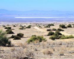Closer to Highway 58 that runs along the northern boundary of Carrizo, on one side of the road, more remnants of the old West; a stock pen and loading ramp harkening back to Gil Favor and Rowdy Yates on Rawhide. On the other side of the road was the biggest solar panel array I have ever seen. Like a massive vineyard, so common now along 99 or I-5, this modern version may become the next generation row crop. It was quite a dichotomy. Soon we turned left on Highway58, the Carrisa Highway, for just a few miles until we turned right onto Soda Lake Road to enter the National Monument. It was just about exactly the 300 miles and 5 hours Google maps said it would take from Sacramento. We stopped to take a quickie tourist photo at the National Monument sign, and then on to find a good camp spot.