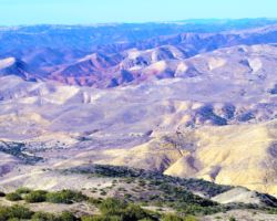 The Carrizo Plain National Monument is about fifty miles West of Bakersfield; about thirty-five miles West of Highway 99; and/or about ten miles West of Highway 33. It is approximately 250,000 acres in size— about 38 miles long—and 17 miles wide, running approximately NW to SE. The Monument is distinguished for its world-class fossils, paleontological resources, and as the location where several rock formations were first recognized and defined such as the Paso Robles, Caliente, and Morales formations. The geomorphic and geologic structures of the Monument are the product of millions of years of erosion, sediment deposition, faulting, volcanism, and uplift. Most of the sediments that consolidated to form the Caliente and Temblor Ranges that surround the Plain were deposited into marine and near-shore basins during the Miocene Epoch.