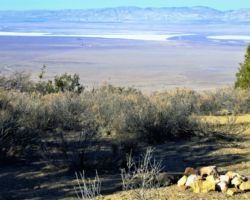 There are two campgrounds in the Monument, Selby and KLR. Selby is the first you come to, but it is about 4 miles down a dirt road tucked up into a canyon. It is fairly remote, but it is pretty much a flat, scraped, gravel parking lot with metal shade structures, concrete tables, and an outhouse. Just before the campground, there is a road that leads up about 3 or so miles to a trailhead. We came back from the campground and took that fork up a pretty steep grade, and within a few turns, knew we were on the right track. A few more sharp turns and we came upon a large flat, open spot between the road and the edge of the steep hill. As we climbed up the road to this spot, at one point, all you could see was the fire ring and then the great beyond – the ground was flat and had absolutely no vegetation within its 100 foot diameter. But it felt like it was a wide spot in the road, with nothing separating it from a passing car. Not that there would be any, put it was just a tad too exposed to the road.