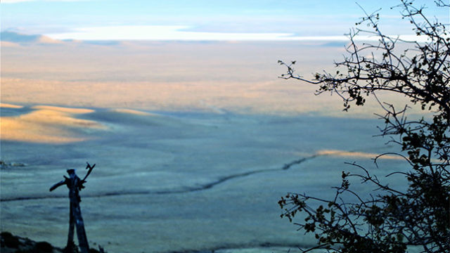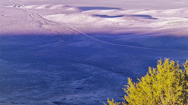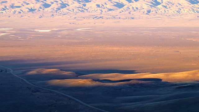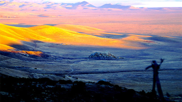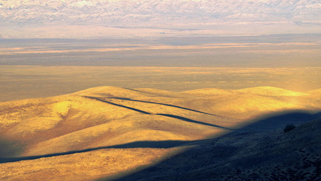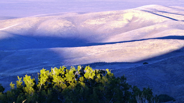 This really blew me away – I was pretty far away but it was so quiet, so peaceful, so still. An occasional breeze rustling the bushes, an occasional birdy whizzing by into some shrubbery; the call of a hawk, the call of a Raven; chirp of a little tweety bird. That was it. Silence. In gigantic open spaces like this it is so quiet. The few local sounds can be heard from great distances. Like the views and vistas and massive open landscapes that play tricks on your eyes and make judgment of distance so difficult, so too does the absolute stone cold peacefulness of the desert and open arid plains like this. I was really happy and hopefully captured some of the images of shadows, low light, and mirages that the setting sun was creating over the low lying topography below. I felt like Lawrence of Arabia – it wasn’t that desert-like; there were no sand dunes or camels, but this place felt good and the images being created, and in constant motion and permanently slightly modified into more perfectly beautiful and fluid scenes, had me. I could have made it; I could have flown with the Ravens; I could have been.