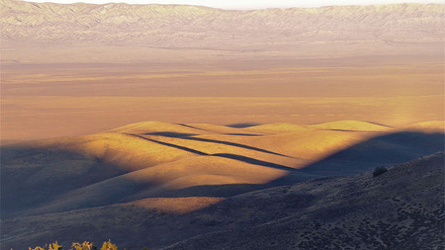 The Carrizo Plain National Monument is about fifty miles West of Bakersfield; about thirty-five miles West of Highway 99; and/or about ten miles West of Highway 33. It is approximately 250,000 acres in size— about 38 miles long—and 17 miles wide, running approximately NW to SE. The Monument is distinguished for its world-class fossils, paleontological resources, and as the location where several rock formations were first recognized and defined such as the Paso Robles, Caliente, and Morales formations. The geomorphic and geologic structures of the Monument are the product of millions of years of erosion, sediment deposition, faulting, volcanism, and uplift. Most of the sediments that consolidated to form the Caliente and Temblor Ranges that surround the Plain were deposited into marine and near-shore basins during the Miocene Epoch.