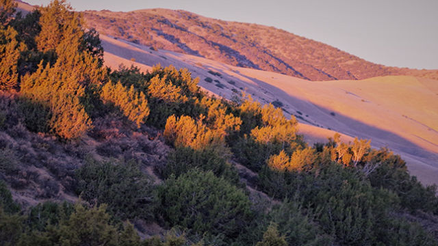 We had stopped feeling like we were still in the rig, and starting to get the feel for this place. The sun was getting low and it was going to set behind the much higher ridge behind us. I wanted to stretch my legs, explore a little, and take some pictures. I wondered if the first spot down the road was too far away, but I headed out in that general direction. Shortly, I was off in another direction as a long, wide, flat ridge extended away from the road out in front and below the site we were camped. I follow an animal trail out the edge and I felt like I was going to sing, but fortunately, I heard Bob and Steve’s voices from above. I couldn’t make out the words; it may have been do not sing, but I could clearly hear their voices.