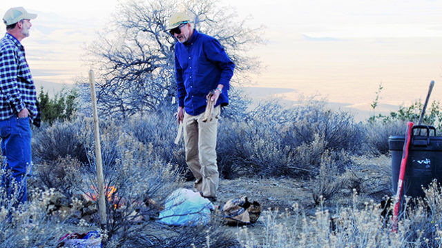 I know I have said this before, but the beauty of containerizing much of your gear is that is makes loading and unloading very quick and easy. We were done in a half hour or so; an excellent spot again a massive Juniper was selected for the kitchen, the views were outstanding; a little breeze was blowing, but not too much and it was almost nonexistent on the leeward side of the Junipers. Tables, chairs, stove, were out; some gear and tents set up; tunes, beverages, and snacks; fire.