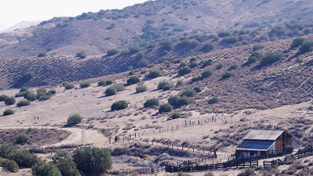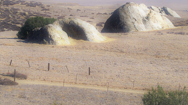 We exited I-5 onto 41, then 33, and then 46, passing near the site of James Dean fatal car crash just a few miles West of where 41 and 46 merge at Shandon. Further South we followed Bitterroot Valley Road for several miles of classic “old California” landscape – golden hills, rolling on and on, scattered clumps of Cottonwoods revealing a shallow water table; the occasional stock pond turning golden brown to cash green. A cockeyed barn, a rock wall, a wooden post, some rusty wire; just a few lasting reminders of the toil and labor of homesteaders scraping a living from this tough land.