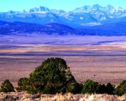 We traversed a massive flat open treeless valley – Fremont Valley named after John C and his exploits in these parts; crisscrossed with dirt tracks of all shapes and sizes. A very few houses, trailers, structures, or shacks dotted the expanse from time to time to break up the monotony and give us something to look at. Most structures had long been abandoned and many were partially or almost completely covered by the sand regularly being blown up against it. It was quite a sight to see entire houses and large buses and equipment all but submerged in sand.