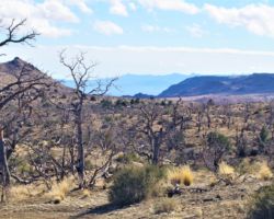 Trucky is pretty impressive every time I give it the opportunity and we crawled up quite easily and fairly smoothly. No hug pits or boulders; no crashing or thrashing. Up top was a little disappointing. There wasn’t much to it – either in size or interest. I was hoping for a cluster of trees or shrubs we could settle in behind for wind and sun protection. Or a rock formation or an old cabin foundation. But, like the vast majority of this country, it was barren rock, or gravel, or sand, depending upon the extent of the decomposing.