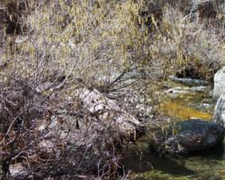 There was much talk of the creek and how cold it would be. This was, after all, still March. And even though we had 5% of our snow fall and that which did come down was very dry as compared to the water content of “normal” years, we were still at 5800’ and this water was still largely coming from snow melt. I believe Tom was the first in. Mike dipped a toe and ran off screaming into the woods. Ken, known for dunking no matter the conditions, took a quick sit and was out. Bob got in a little deeper, Mike reappeared far more determined. Ken re-entered.