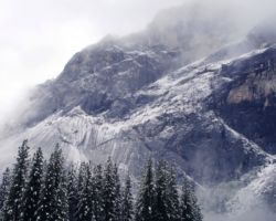 Off and on and on and off and back and forth, this cloud and sun dance went. We were antsy for the bright sun and warm rays to drive off some of the wetness and chill. But the gray overcast was thick and stubborn. Every time we saw the dampness on Glacier glisten in the sunlight and our spirits rose in anticipation of the pending illuminated, the clouds would rally to block out the sun, and dump our hopes back into the cold, wet, gray puddle of the afternoon.