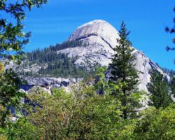 The Tuolumne River was a mile below us, the switch backs were getting shorter and shorter, and I was already tired of making turns. The pavement needed and the efficiency of a narrow dirt road was quickly imprinted upon us both. It took us forever to get down to the bridge and then that turned out not to even be the bridge, which is hard to do considering the gorge is only about 100’ across from wall to wall and the riverbed cannot be any wider than 50’ across. What we first crossed was perhaps a side gorge crossing before hitting the main channel of the river. I was too exhausted to really take note and the road was too narrow to make stopping for a rest and to look about a solid option. On up we went, perhaps the scariest road I have ever driven on. It was steep, narrow, and one hell of a long way down to any point where you might stop rolling. I was gripping tightly, when of course, we met another rig. Fortunately, he was also driving slowly and we met at a good spot and easily passed, but OMG, what a drive.