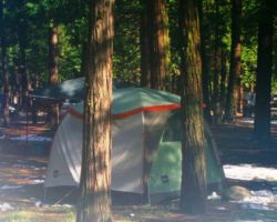 We got to our campground, endured the lecture from the host about bears, fires, generators, the weather, water, religion, taxes, etc., signed the papers and initialed others about having heard what they said and testifying to tell the others. We found our site much like we have the past 5 or 6 years now. Glacier Point was still high above; North Dome and Washington Column, and Half Dome were all still where they were supposed to be. It was reassuring. The weather cooperated while we unloaded and set up camp. We were done in no time; having selected sites for our tent and one we brought for Haley. It wasn’t long before we celebrated with a room temperature beverage and got a fire going.