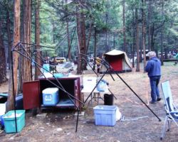 Gorged from eating as many left overs as possible, I could hardly stay upright in my chair. Mike was pointing out constellations and planets and such in the evening sky, making it all the more difficult to stay erect. It was fun to listen to Mike talk about the stars, and space stuff, and the looming trip to Mars – not for him, or Sharon, but for a lucky bunch of other folks. Being clean and stuffed, and a little melancholy at the end of the trip, I slept soundly and awoke early. It was calm, quiet and cool. A good fire was soon ablaze with the last of my kindling and paper and torn paper bag I would religiously fill with fine Cedar kindling each evening and stick in the truck to stay dry. Mike made a great pot of coffee and we warmed up our bagels, ham and cream cheese. We had a lovely morning, until we had to start the inevitable organizing, condensing, and packing. I had to make the walk of shame to the dumpsters with my crumpled tangle of soccer tent frame. Not in a hurry, we barely made the check-out time.