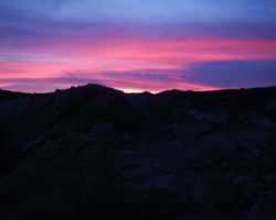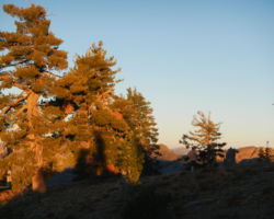 With a glass in hand, we ascended the last 100 yards to the crest, the site of our prior camp, and enjoyed another viewing of the greatest show on earth – a mountain sunset. Back at camp, we refilled our glasses and got the fire, hors d’ vors, and dinner preparations underway. The lighting was magnificent up so high, air clean and fresh, and very quiet for being in a campground. A certain one of us had a tiny bit of a candy bar and was crushed moments later; clinging to the edge of the table for balance and any semblance of standing on his own power. The tunes were exceptional if I do say so myself, but my legs were like concrete and even a cream filled pastry couldn’t persuade me to join Bob and Tom to hike to the fire lookout.