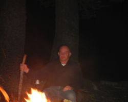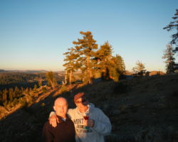 Briefly, in a nutshell, the last time we went to Grouse Ridge: Ken and Dave couldn’t find the end of the road at which the rest of us were camped and instead headed to some very confined quarters for their own rendezvous; the rest of the boys got so wasted that a boombox was held overhead a naked body up to knees in the lake blaring Prince’s Purple Rain to the campground across the lake; on return drive from lake to camp, the pounding was so intense a tire blew out and then the rim cracked before we were sure we were going too fast; a walk of a mile or so down the dirt road to the paved one and another mile or so down the pavement yielded a good Samaritan to drive us another couple miles to the turnoff to the road up to our lookout campsite; another mile or so hike up that road, we finally wondered why we were carrying all these provisions we had taken from the truck some three hours ago; another good Samaritan picked up Bob to drive him to the top to get his rig; another vehicle with people lower than a toad stopped to talk to Jerry but left him in the pitch black darkness and a cloud of dust, even though his age, weight, and alcohol
