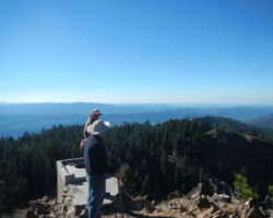 The easy hike up to the lookout paid off in awesome views. The air was really clear – especially since we had very poor air quality in the recent past from the fires. I was happy to now have been up to the lookout and we were soon back at camp. Motivation was lacking and there was a fairly lengthy period of sitting about. We slowly got to packing up and consolidating bins and containers and were soon ready to roll, feeling like many of the unsettled ghosts of trips past had been put to rest. Alas, as I suspected, I had run my battery down to nothing with the extensive albeit outstanding tunes that had played all afternoon and evening. Tom was quick to my aid with battery cables and a fresh charge.
