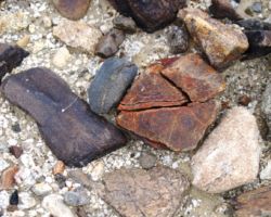Like the rest of the trip, it all just happened calmly, smoothly, organically. We had a nice fire, a nice breakfast, and just started picking up a little here and there, combining, condensing, coalescing. I am always glad to get to camp to unload the burden from the truck, especially on these desert trips where we haul much wood and water. Lately, however, we have been at least equaling the weight of the wood and water and being fully geared up with the return haul of rock. This confounds me. But we were very happy with our haul and they would make find memories closer to us as we caught a glimpse in the gardens or along a path.
