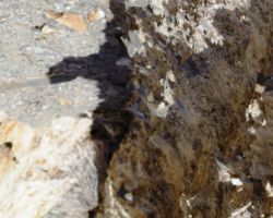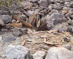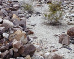 Much of the Panamints are composed of Precambrian metamorphic rocks that were later intruded by Cretaceous granite. Hot mineral solutions created quartz veins at the contact of the 2 rock types. These quartz veins contain gold, silver, lead, and zinc. The first mine up Jail Canyon was the Gem mine, followed by the Corona and several other. You have to cross about 3 miles of alluvial fan before you access the canyon, and I don’t think we made it more than 1, before we exited by a fire ring and a large patch of very smooth desert pavement. We loaded up our day packs and began to wander up the alluvial fan, in and out or and across hundreds of washes, those you could step across to those that were 50 feet across and 20 feet deep, none of which you can see or identify until you are near on top of them.