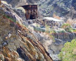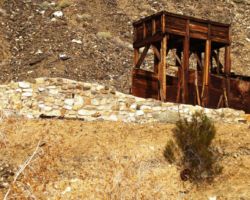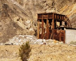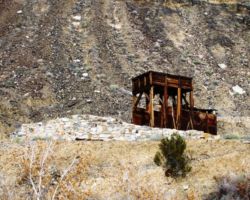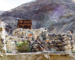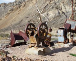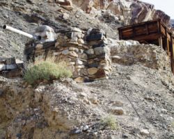 Plus, much of what was Panamint City some 4 miles and 3500’ higher up the canyon was now below our feet. P-City was another in a long line of short lived booms. It exploded in 1873 when Richard Jacobs discovered Silver. Within 2 years, main street was a mile long and stages were coming up the canyon 3 times a week to the town high up on the mountain side. But the “Bank Panic” of 1875 played havoc on mining stocks, and then a flash flood in 1876 washed much of the town away. On May 1, 1877, the stock market crashed due to the news that Virginia City mines had played out. Attempts were made in 1925 and again in 1947 to mine the silver, but were short lived.