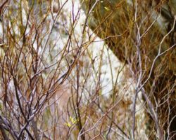 Upon return to camp, I was destined for bed, and quickly retired. Bob and Steve lingered by the fire and were visited by a beautiful Kit fox. It scampered around the camp this way and that, scoping them out and smelling what there was to smell. He came in remarkably close they thought and were happy for the nice visit. The next morning I again was up first and off to my morning routine. I got the fire going and again woke the boys after a brief walkabout from my tearing of the scraps of the cardboard box flaps. Slumber interruptus complete, the zippers, unzipped, the grunts and groans emanating, morning had arrived. Coffee, biscotti, toast with honey, Bob made eggs and sausage and more coffee. Not much of a sunrise due to the cloud cover, but perfect temps., no precip., peace, quiet, calm, distance, lighting, alive.