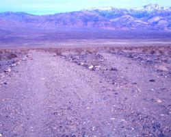 From a distance or a ridge or a peak or a plane, these alluvial fans look smooth and consistent, the sizes of boulders, rocks, stones, and pebbles all organized by their ability to resist gravity as they are so rudely removed from the mountains by rain, wind, wedged out by repeated freezing and thawing, or by the occasional jolt of a fault. From the car or mule level, you can see that the vast majority of this material is pouring out of specific canyons and then spreading out as it is released from the confines of the narrow canyons out into the wide open valleys. The increased volume decreases the rate of the material and it loses some of its juice until it finally comes to rest somewhere along the apron. If one were to head out and walk across these debris fields, one would soon see that the aprons have an great variety of gullies, washes, and elevations, You do an awful lot of climbing up and down and in and out of washes within washes within washes, landscapes within landscapes, results of events within, under, on top of, intertwined within the results of other events, over hundreds of millions of years (geologists please correct me). To make sense of this place is to be insane.