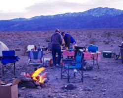 Other than my morning constitutional, this was the first time, I had been on this side of the wash. The road was good, and rose gradually up the apron. The clouds were pretty thick, so the sunrise was a thin orange strip above the Panamints. Even the breeze that came up with the warming sun was calm, especially with most of the suns energy being absorbed by the clouds. I returned to camp and got the fire going again; the tearing of the paper causing a stir of the boys – fortunately from different tents.