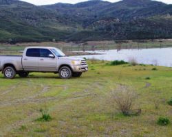 As if responding to the call, headlights appeared out in the middle of nowhere and came right up to our fire. It was the Hmong Patrol, the guy with the Tacoma that had helped before. He had been part of the massive group on the other side of the reservoir that Jordan and I saw on our walk. For some reason, everyone on his group decide to leave, so he and his wife were heading out too. He offered to take Dakota back with him, but by then, I think Dakota was spent and was willing to spend a terrible night out here and start fresh, or somewhat fresh in the morning. So, the Hmong Patrol left for a slow cruise on back roads back to Sacramento, and the four of us were left at the fire side again.