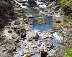 We went downstream to the old trestle bridge that now sits high and dry corroding and flaking metal chips into the creek. An old red Toyota Tacoma with 3 old dudes had a choice spot in a clearing with a great view of the river and the last of the valley as the creek headed towards the open body of the reservoir. The road continued up a steep rise, which we did, but on the other side was deep mud, a precarious side slope, and a fairly narrow course to the river below. With Jordan’s encouragement, I made one half-hearted attempt to cross the mud, but it was not much of an effort. I was less than convinced that the reward was worth the risk, as the side slope was quite serious and the open country beyond was very scarce.