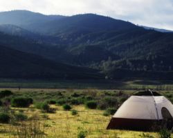 As we ascended out of a steep gully, we could see a huge group camped down by the water at what appeared to be the end of the road. I didn’t want to go too near or walk through their camp, so we just turned around. We followed this track all the way back to Bartlett Springs Road where we had driven to when we were first hunting for a trail. We followed Bartlett Springs back to our camp after passing the skeet/target shooting dudes who were parked on the landing below the road. Jordan yelled out to them asking about what they were shooting, but they weren’t too interested in communication.