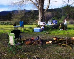 We backed out of the mud to a safe spot and surveyed our options. Anywhere on this side of the river was well within the reach of the multi-family motorcycle gang, and good camping spots were not making themselves apparent. We decided to head back to get on a dirt side road that paralleled Bartlett Springs road but below it – along the river. It took more doing that one would have expected, but we found it.