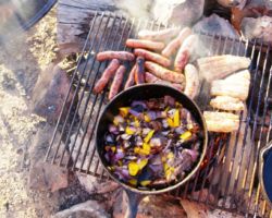 Many of the fellas left after 2 nights, some after 1, but we stayed for a third and Terry and Tom cooked up the best food I had ever eaten on a camping trip –steaks, seafood, giant brown mushrooms, fancy vegetables, everything marinated or sautéed in delicious sauces. It was awesome. Steve and I had done a wonderful in-ground cast iron meal the night before, and we may have had some special cocktails as well. It was just a magical trip.