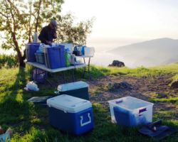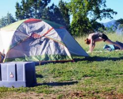 Unfortunately, all signs seemed to be indicating a longer stay rather than a briefer one. One of the girls got out her yoga mat and began an extensive session not 4 feet from Steve’s tent. The other girl pitched herself over the edge of the hill and sprawled out in the sun amidst the lupine, poppies, buttercup, milkweed, and poison oak. One of the guys was gathering sticks. While, as a middle aged American male, I had fantasized about a group of sorority girls joining us on a camp trip, somehow this particular reality was too much for me to bear.