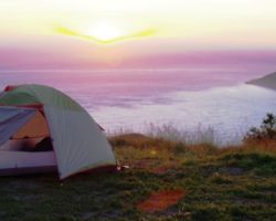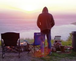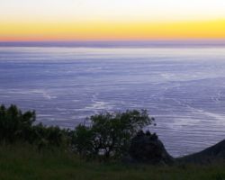 We cooked and ate and stared at the ocean and stared at the ocean and stared at the ocean some more. It truly was mesmerizing and we felt every bit the lucky fools that we were. As darkness fell, we cleaned up a bit, added a small amount of wood to the fire, but kept it low because of the persistent wind. We had to put on a top layer of wind protection, while not zipping up or getting too hot, because it was anything but cold. But the wind would not mellow out and it substantially diminished the quality of the sitting around the fire experience, so we headed off to bed before too long. When I awoke to pee at some point in the night, it was stone calm and silent. The half-moon was still super bright and it lit an eerie glow over the grassy knoll. The white bark of the oak tree reflecting the moonlight was truly magical.
