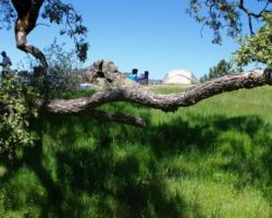 The vehicle moved on down the road and we again were filled with joy that we had found and occupied this spot. We went about setting up the kitchen by the oak tree and the grinding rock and then our tents and bedding. We were getting settled in to our chairs as another rig slowed and looked the site over. This time, a guy parked and walked across the opening to us. He said he and his girlfriend had been looking for a spot to camp and had been asked to leave when they attempted to settle in too close to another group.