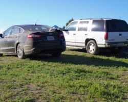 Not even close. As we were talking with Ryan and Nicole up by their car, 4 cars came slamming into our spot again, within feet of the rigs, feet of Steve’s tent and feet of all of us, now standing in a group. This time, we didn’t even let them get out of the cars. Ryan and I approached the closest car and let them know they couldn’t stay here. We just had this conversation with another big group and it wasn’t going to happen. These guys were a little less willing to pack it in, I guess in light of their being an even bigger group and it getting later in the day to look for other spots. They gave us the low on gas bit, the only one tent (unlike the only one bag) story, the “we’ll be good” – you won’t even know we are there; it’s crowded up there, etc., etc. Reluctantly, they packed up and split. Steve got my keys and moved the truck to all but block the access to the clearing. It was clear we needed to guard our spot.