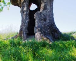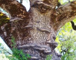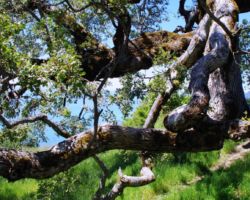 As I got out of the rig and approached them around the base of the tree, I said that I thought I had seen a bunch of monkeys in the tree and I thought I had slipped a few continents. I got a laugh out of them as they headed back to the camp spot and left me alone with the tree. I knew instantly I wouldn’t be able to take any good pictures of it, even with the lupine flowering at its base. If any of this area had any spiritual value at all, this tree was the lightning rod, absorbing equal parts Pacific Ocean, fresh salt air from around the world, clear, clean sunshine, and all the power of the grasses and wildflowers and the canyon and ridgetop forests. This thing was something else.